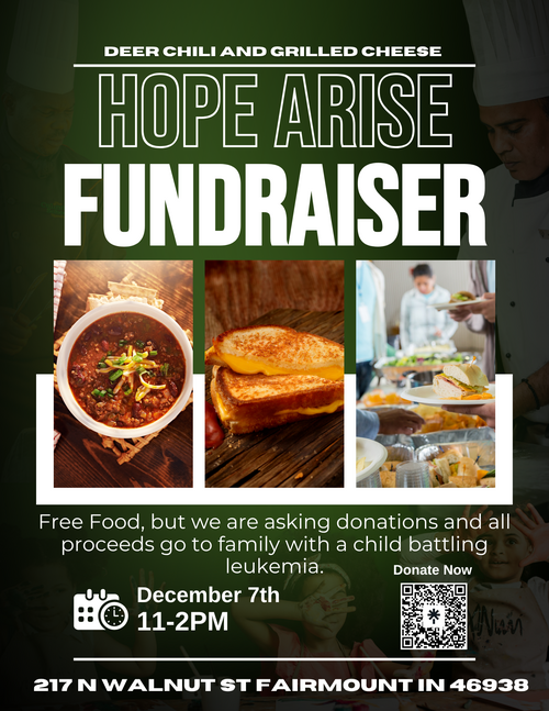 - December 7 - Chili/Grilled Cheese lunch fundraiser for Erin & Emily Martin (see Make a Difference below)